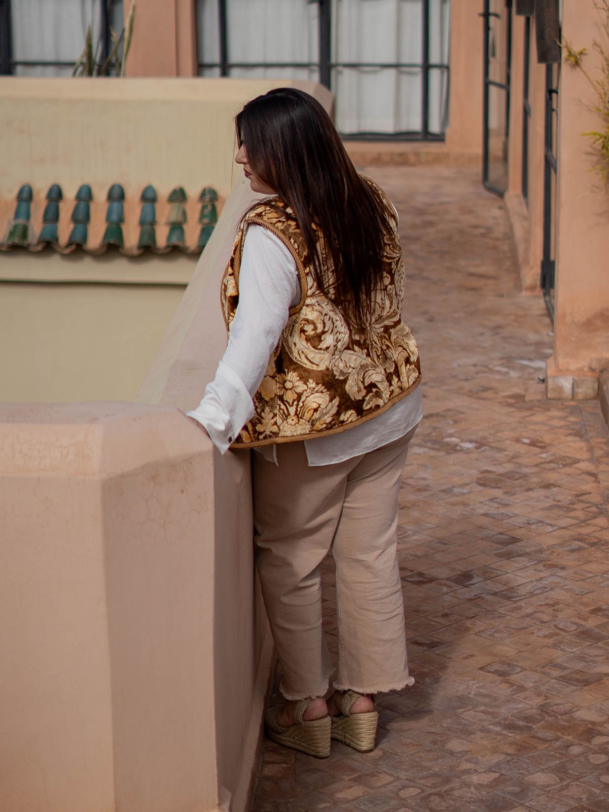 Chaque gilet Maison Inadmel est une pièce unique, créée à partir de tissus vintage soigneusement sélectionnés, auxquels nous donnons une seconde vie. Autrefois destinées à l’ameublement, ces étoffes sont réinterprétées pour devenir un vêtement de caractère, pensé pour durer.