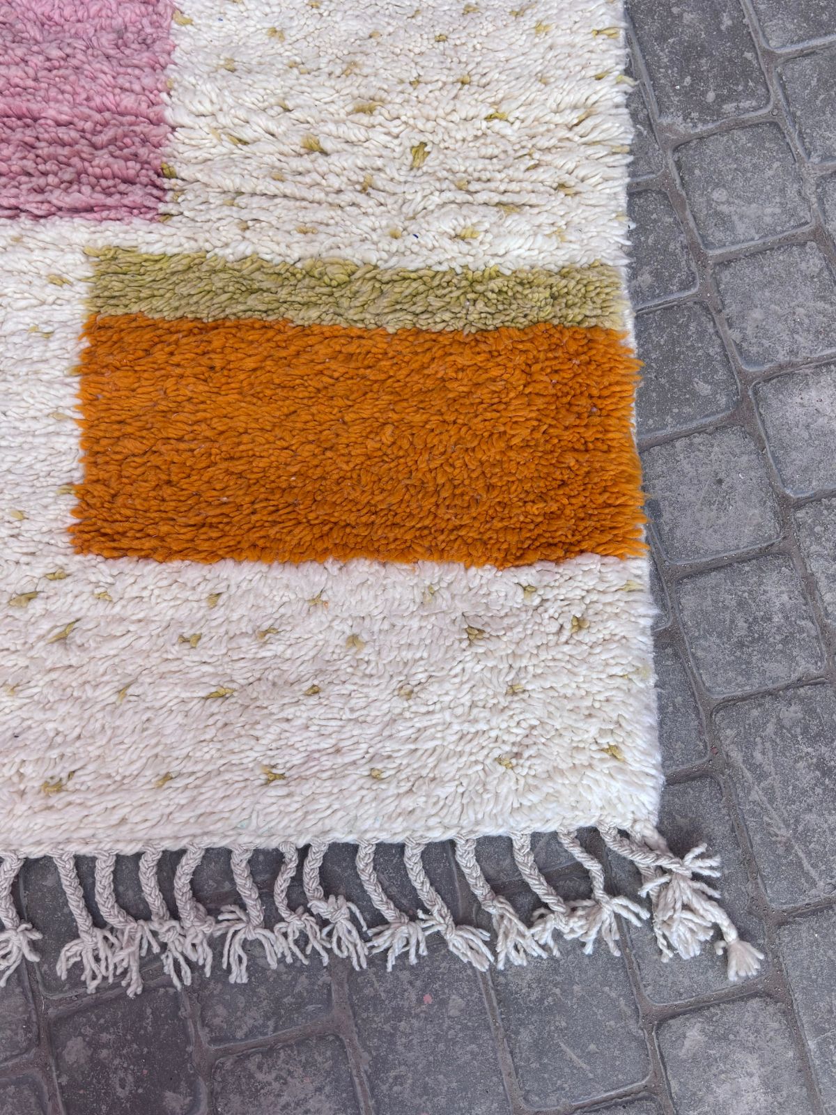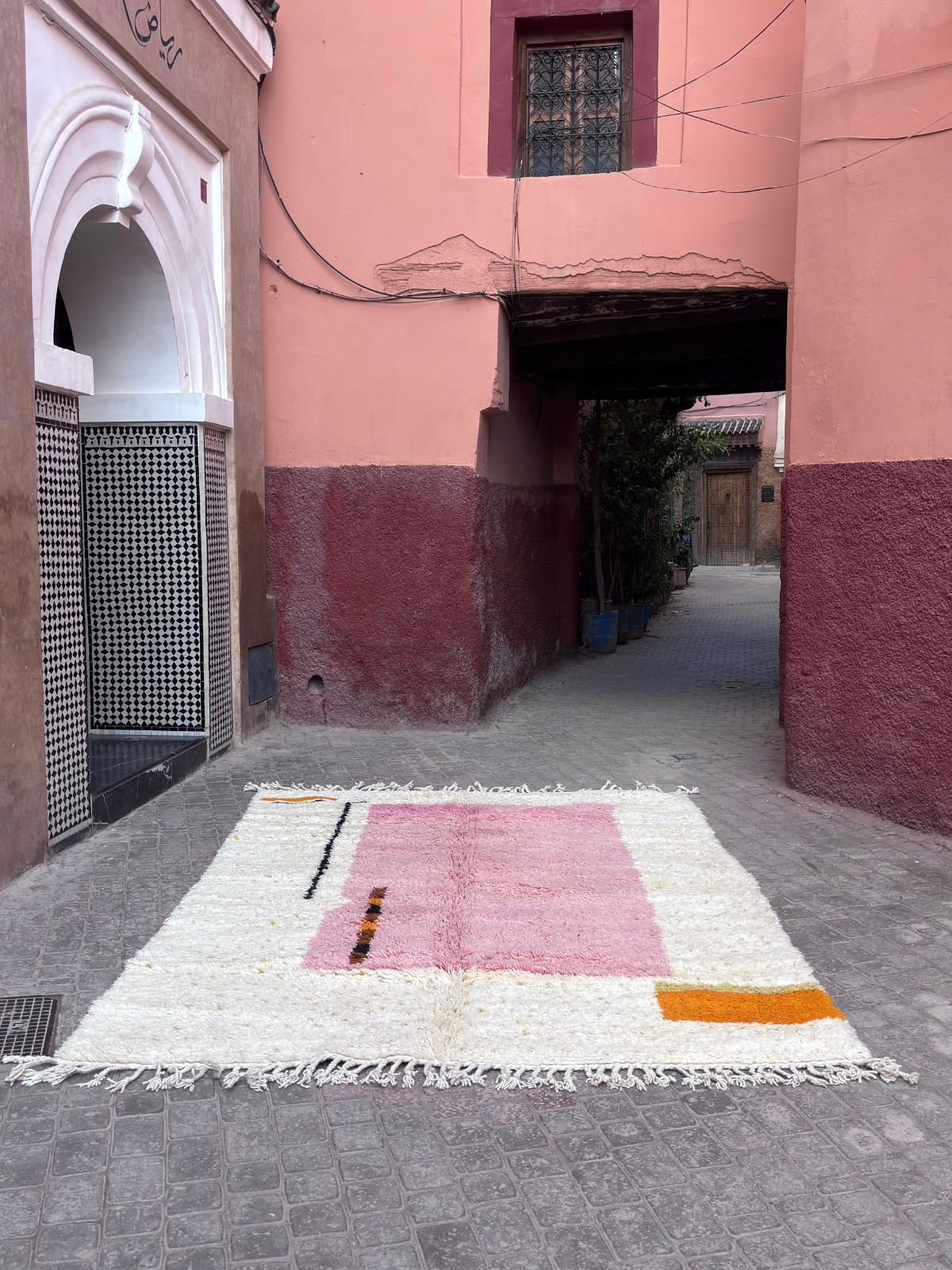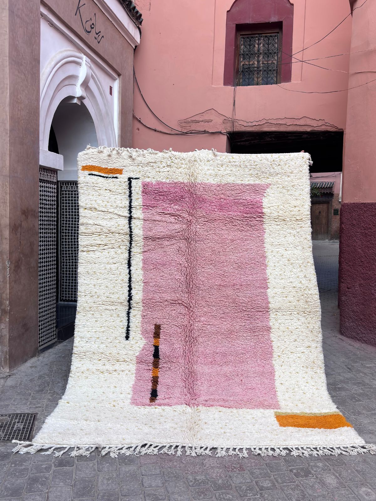 Symbole d’élégance intemporelle, le tapis Beni Ouarain séduit par ses motifs géométriques tracés sur une laine écrue épaisse et moelleuse. Tissé à la main par les femmes de la tribu Beni Ouarine , ce tapis transforme chaque pièce en un espace chaleureux, raffiné et profondément ancré dans l’artisanat marocain.