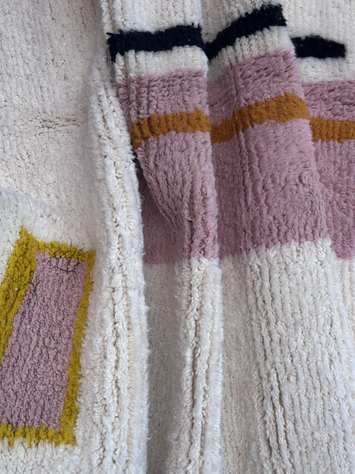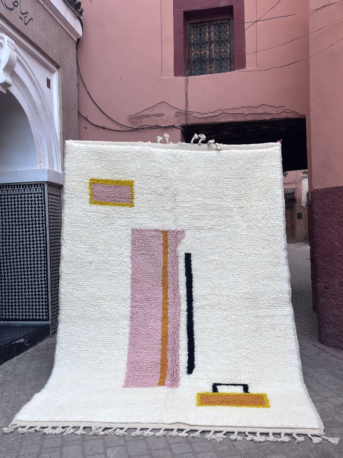 Symbole d’élégance intemporelle, le tapis Beni Ouarain  séduit par ses motifs géométriques tracés sur une laine écrue épaisse et moelleuse. Tissé à la main par les femmes de la tribu Beni Ouarine , ce tapis transforme chaque pièce en un espace chaleureux, raffiné et profondément ancré dans l’artisanat marocain.