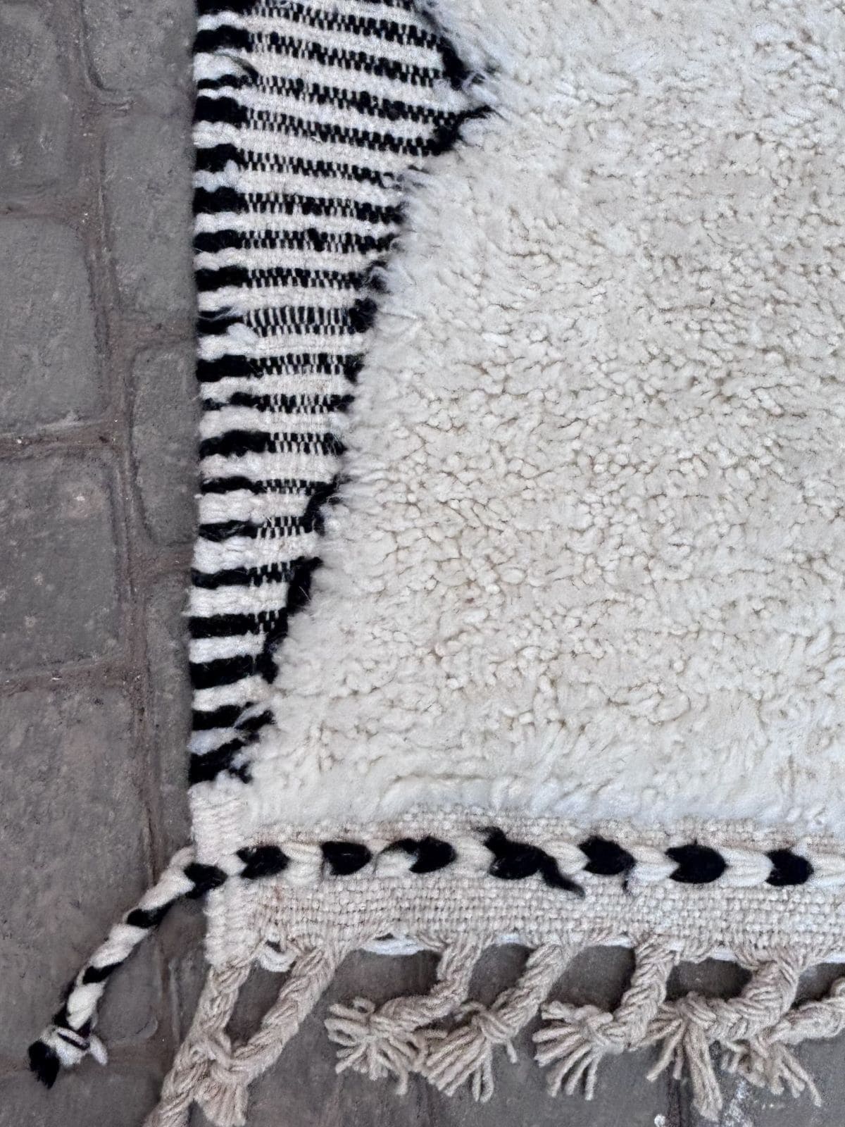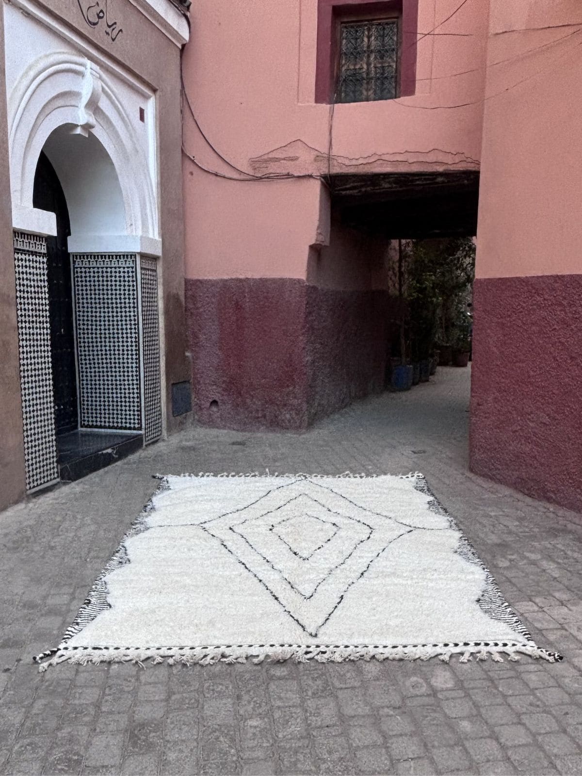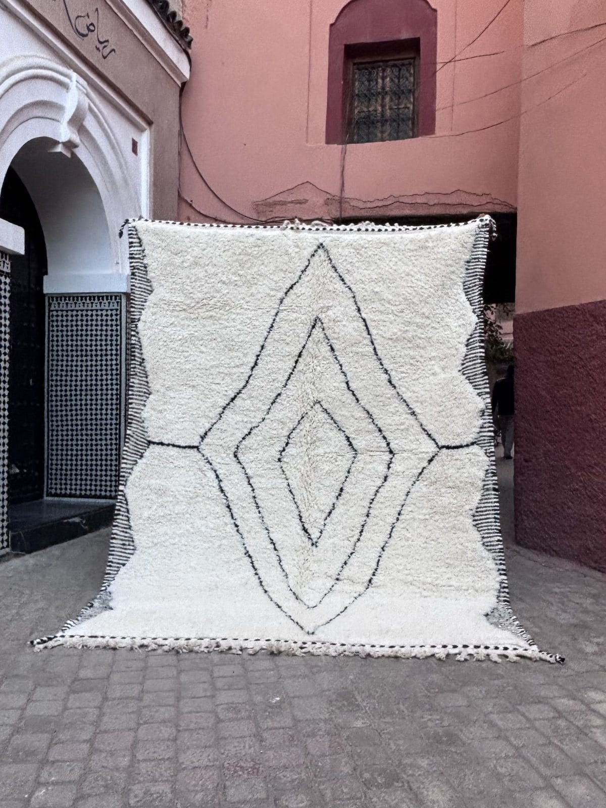 Symbole d’élégance intemporelle, le tapis Beni Ouarain  séduit par ses motifs géométriques tracés sur une laine écrue épaisse et moelleuse. Tissé à la main par les femmes de la tribu Beni Ouarine , ce tapis transforme chaque pièce en un espace chaleureux, raffiné et profondément ancré dans l’artisanat marocain.