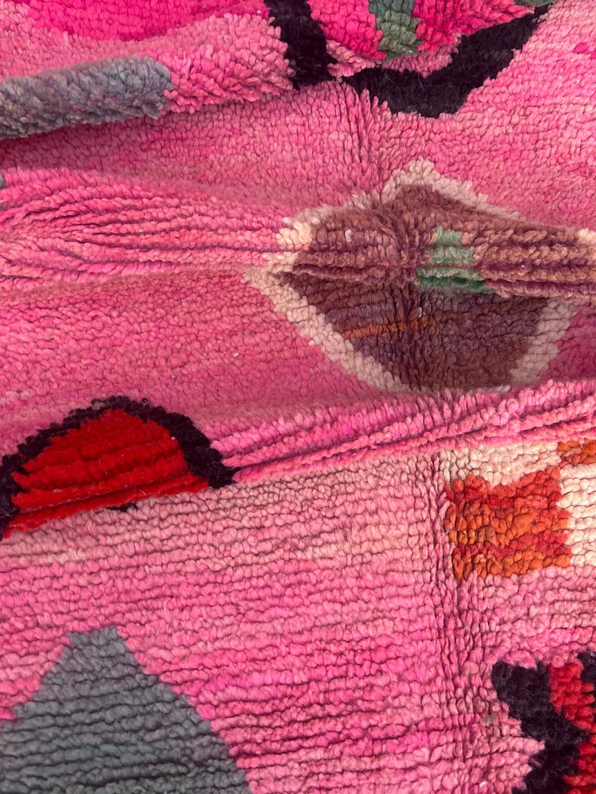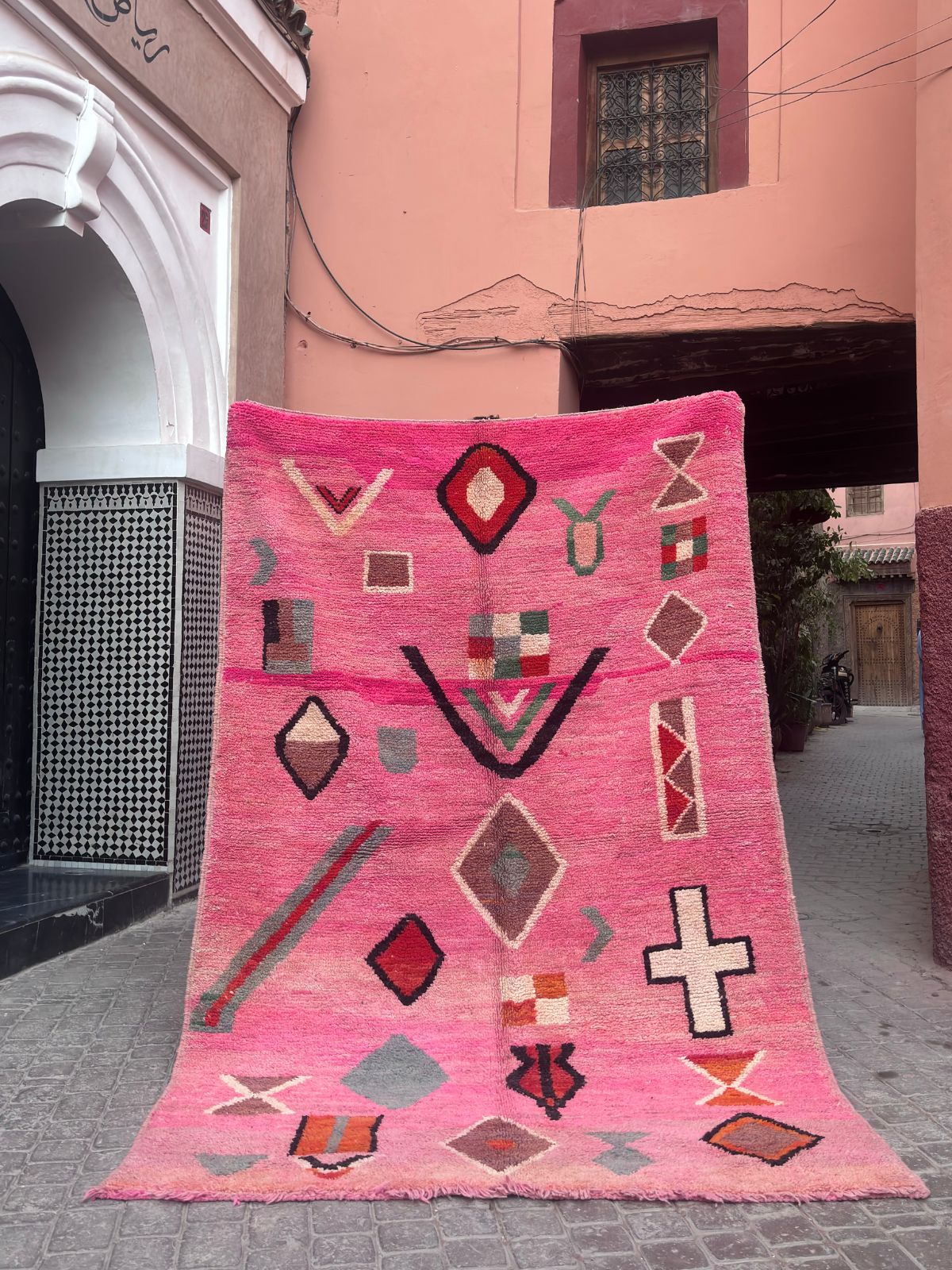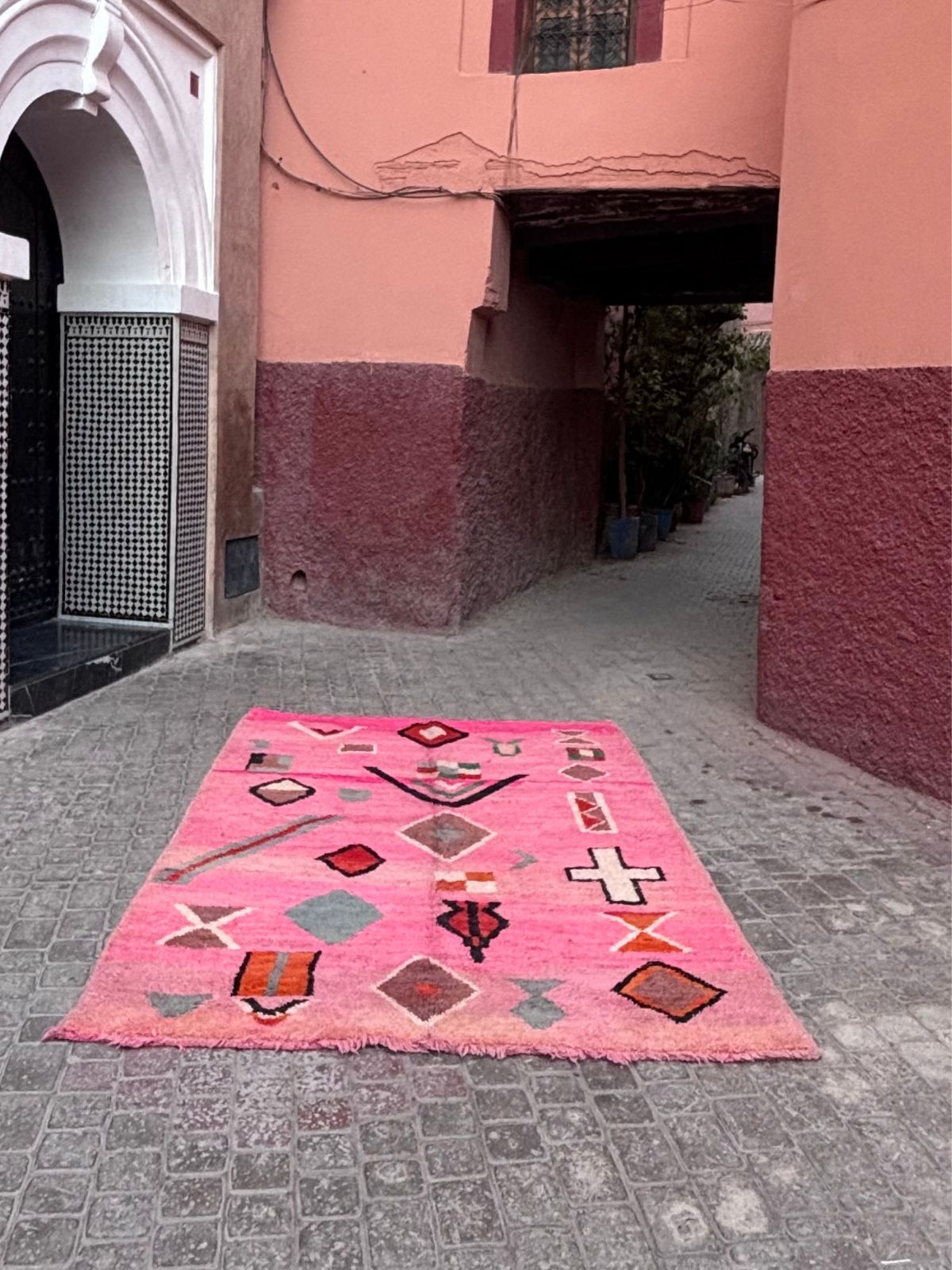 Authentique et vibrant, chaque tapis Boujaad est unique et raconte une histoire, mêlant symboles ancestraux, émotions intimes et créativité spontanée.