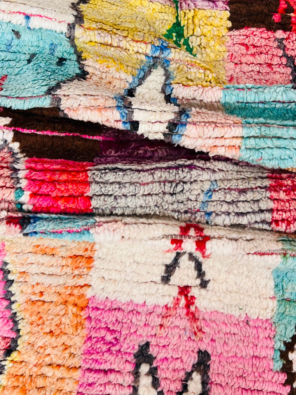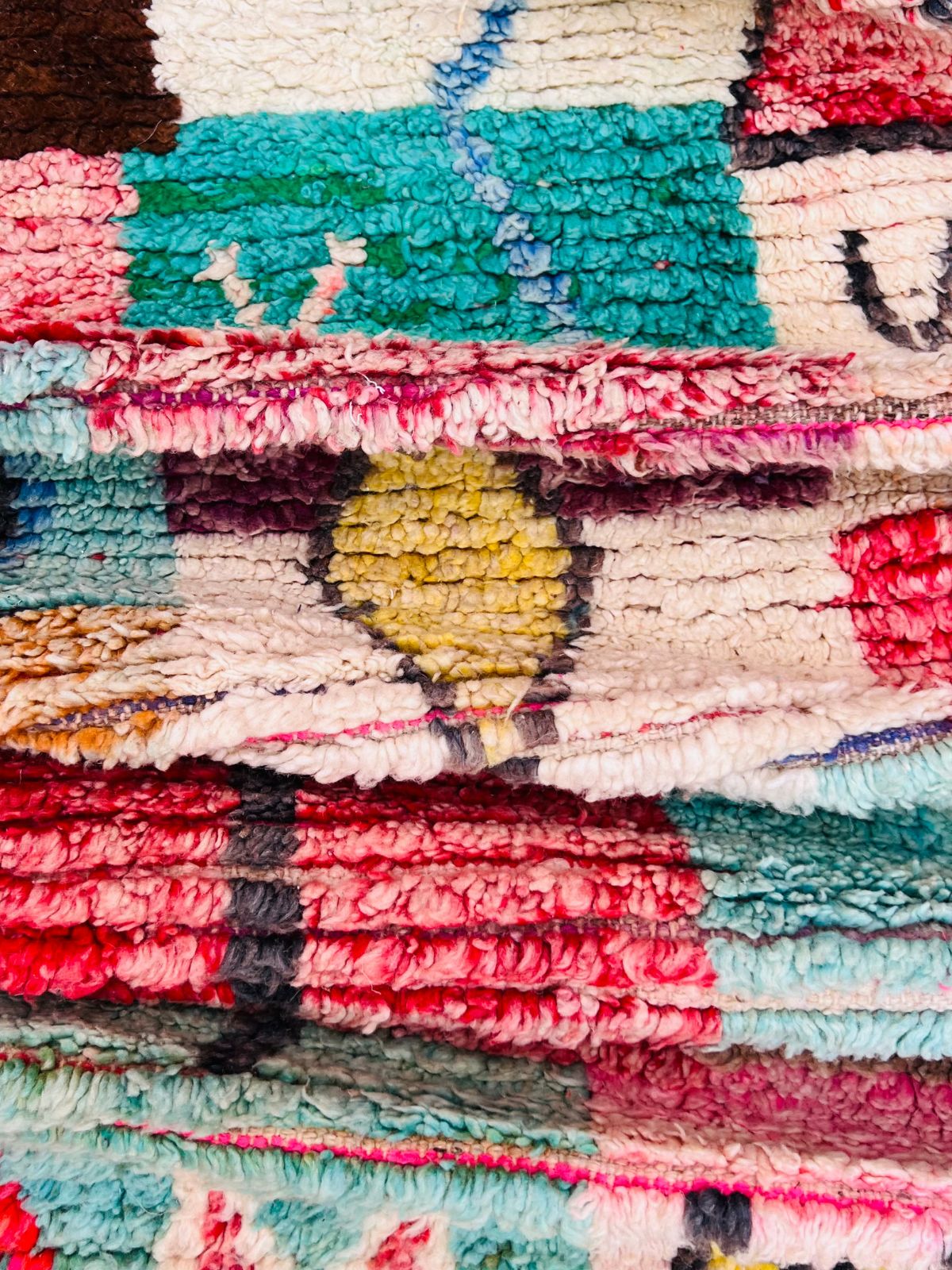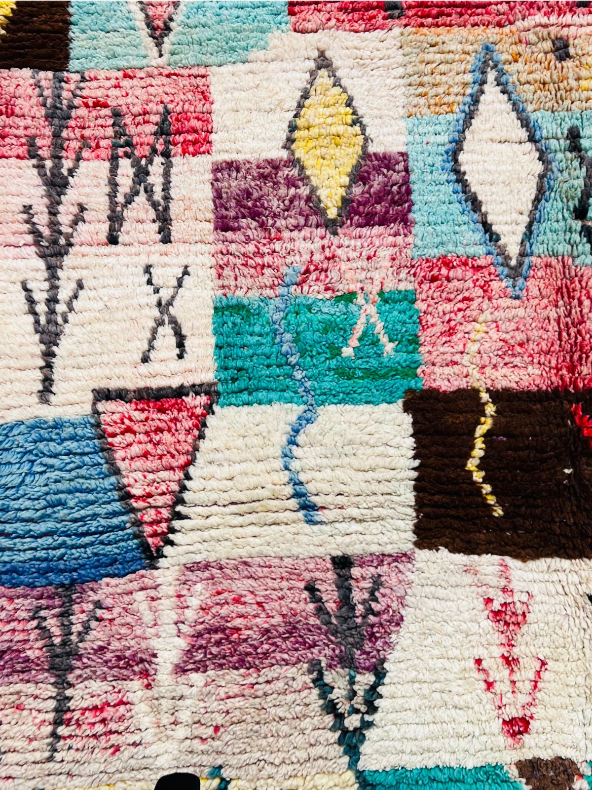 Authentique et vibrant, chaque tapis Boujaad est unique et raconte une histoire, mêlant symboles ancestraux, émotions intimes et créativité spontanée.
