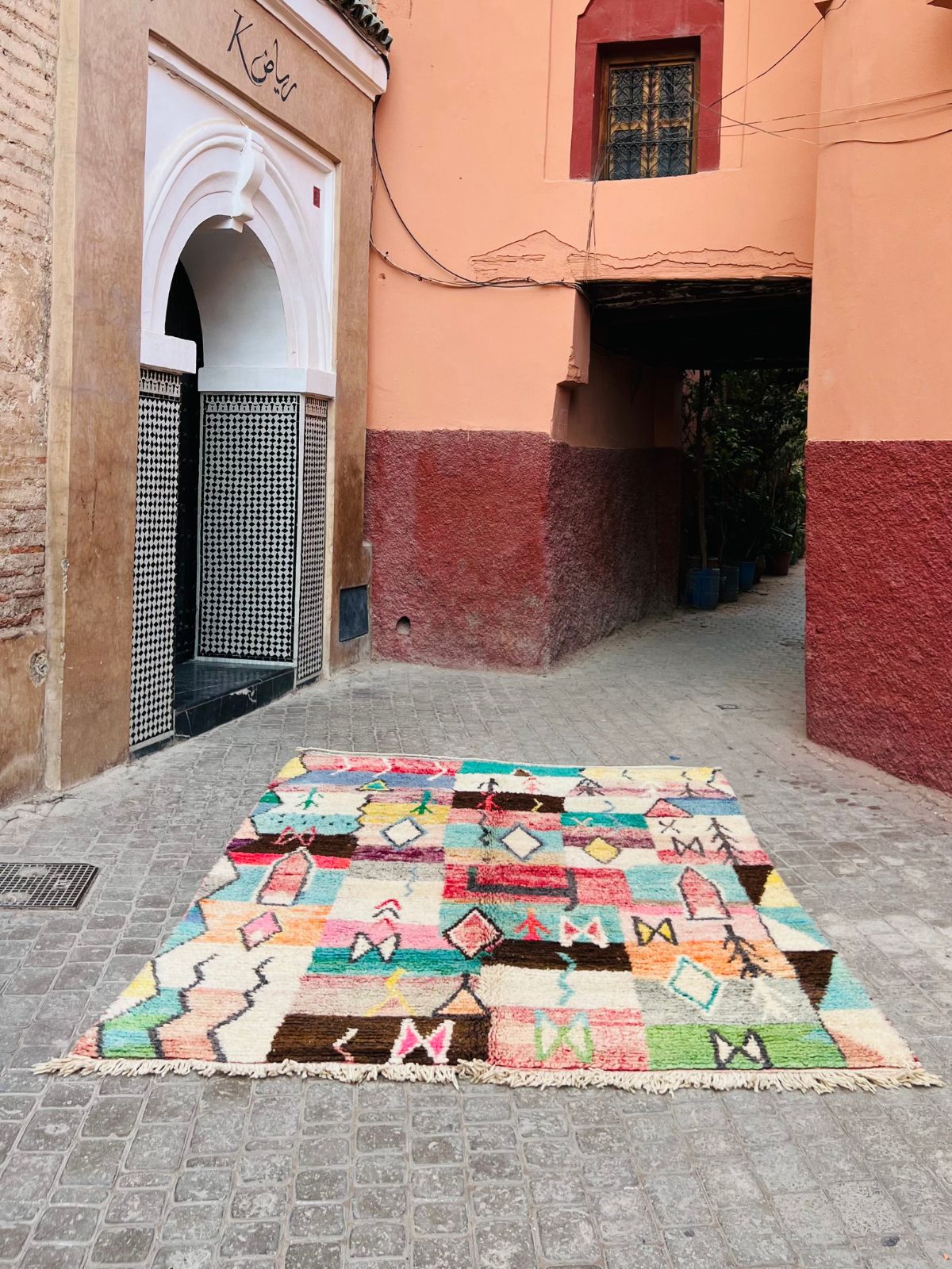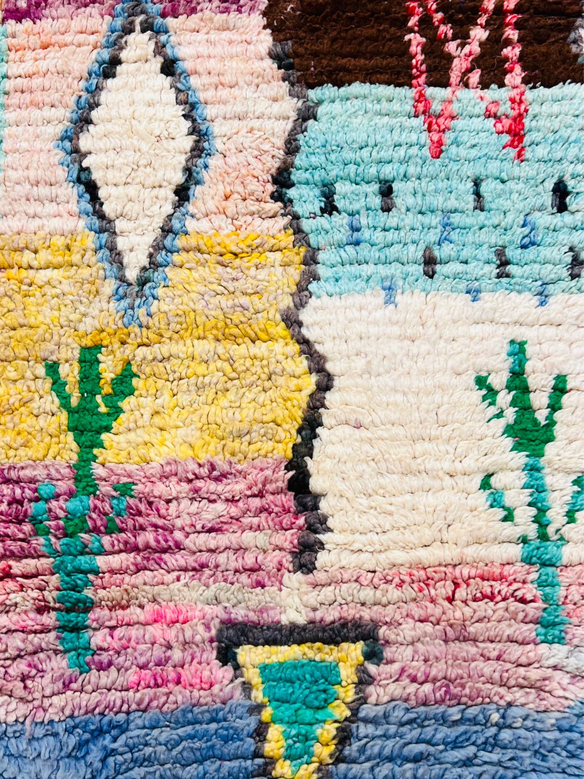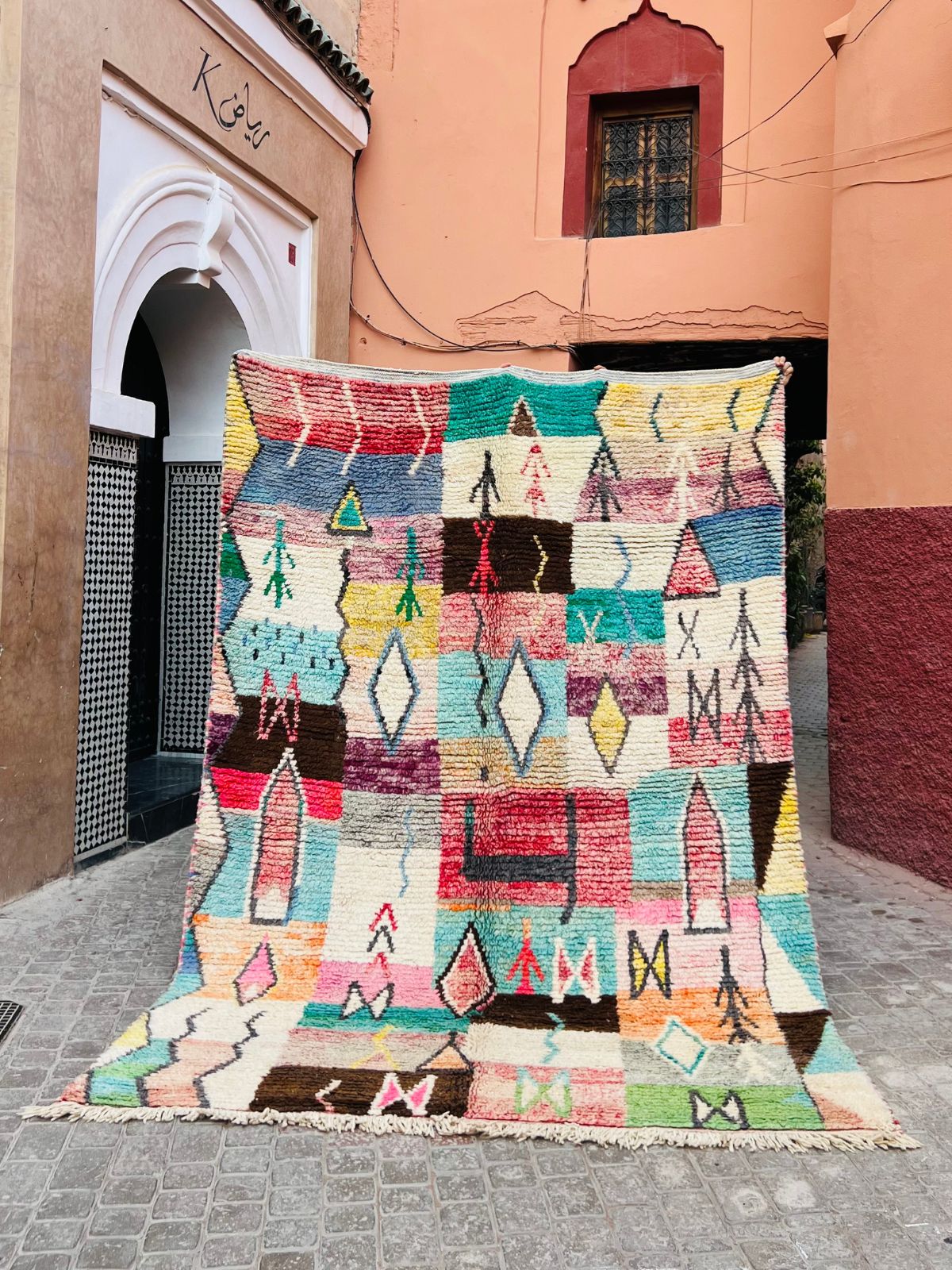 Authentique et vibrant, chaque tapis Boujaad est unique et raconte une histoire, mêlant symboles ancestraux, émotions intimes et créativité spontanée.