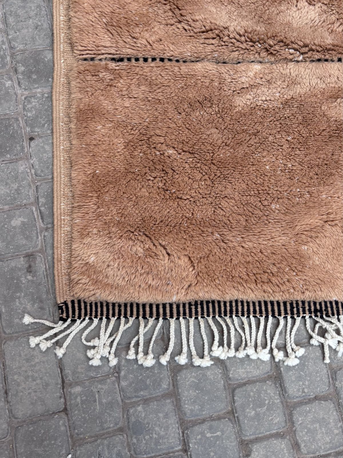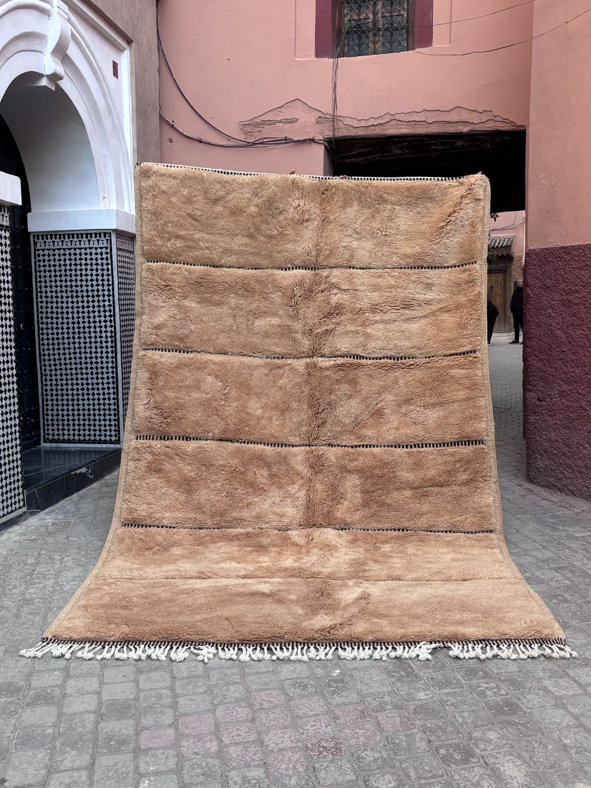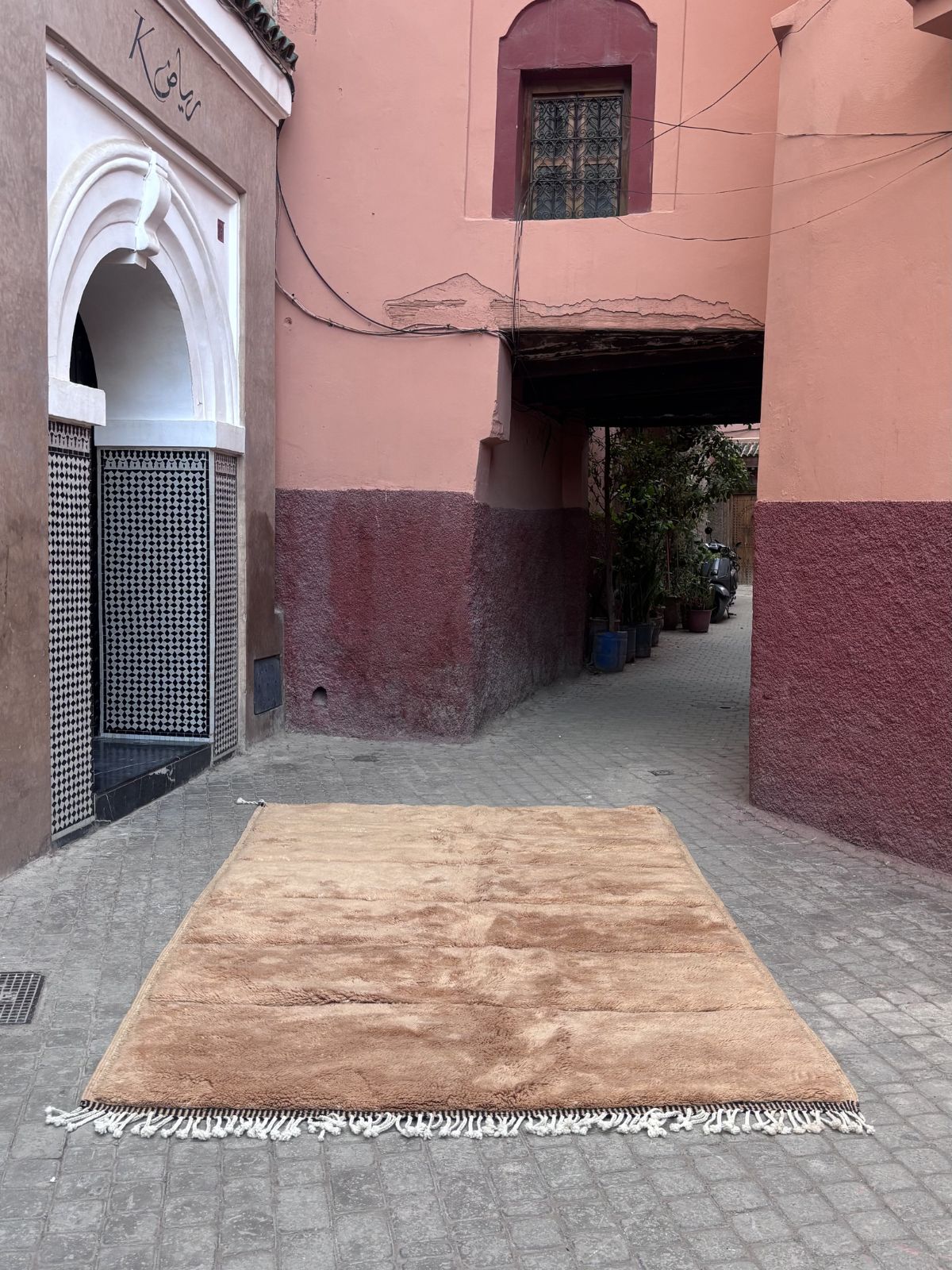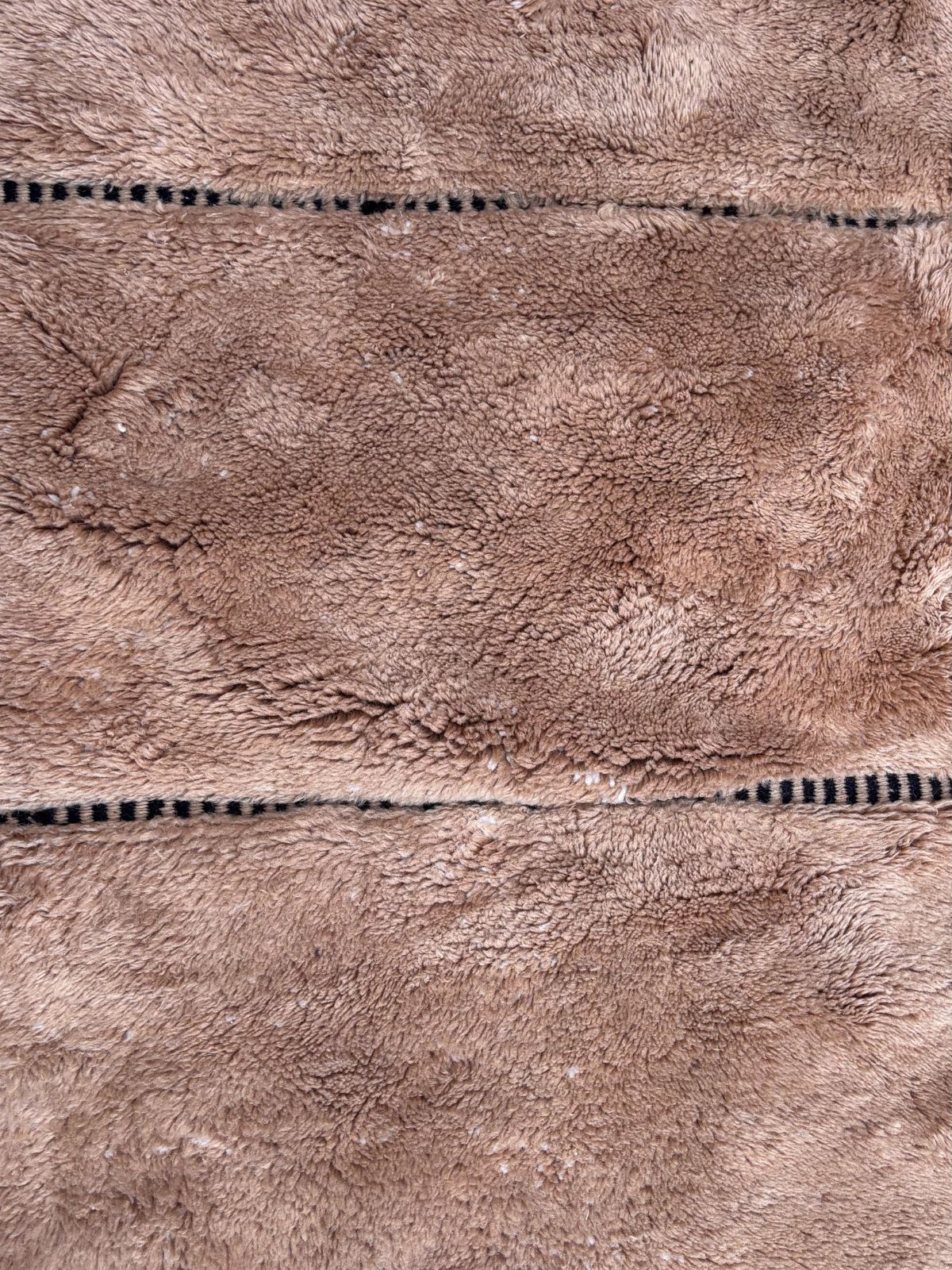 Contrairement aux tapis plus graphiques, le Beni Mrirt séduit par sa sobriété, ses nuances naturelles et ses motifs discrets, presque effacés, qui laissent place à la matière. Son toucher soyeux et son épaisseur généreuse offrent une sensation enveloppante, transformant chaque espace en un lieu de calme et de confort.