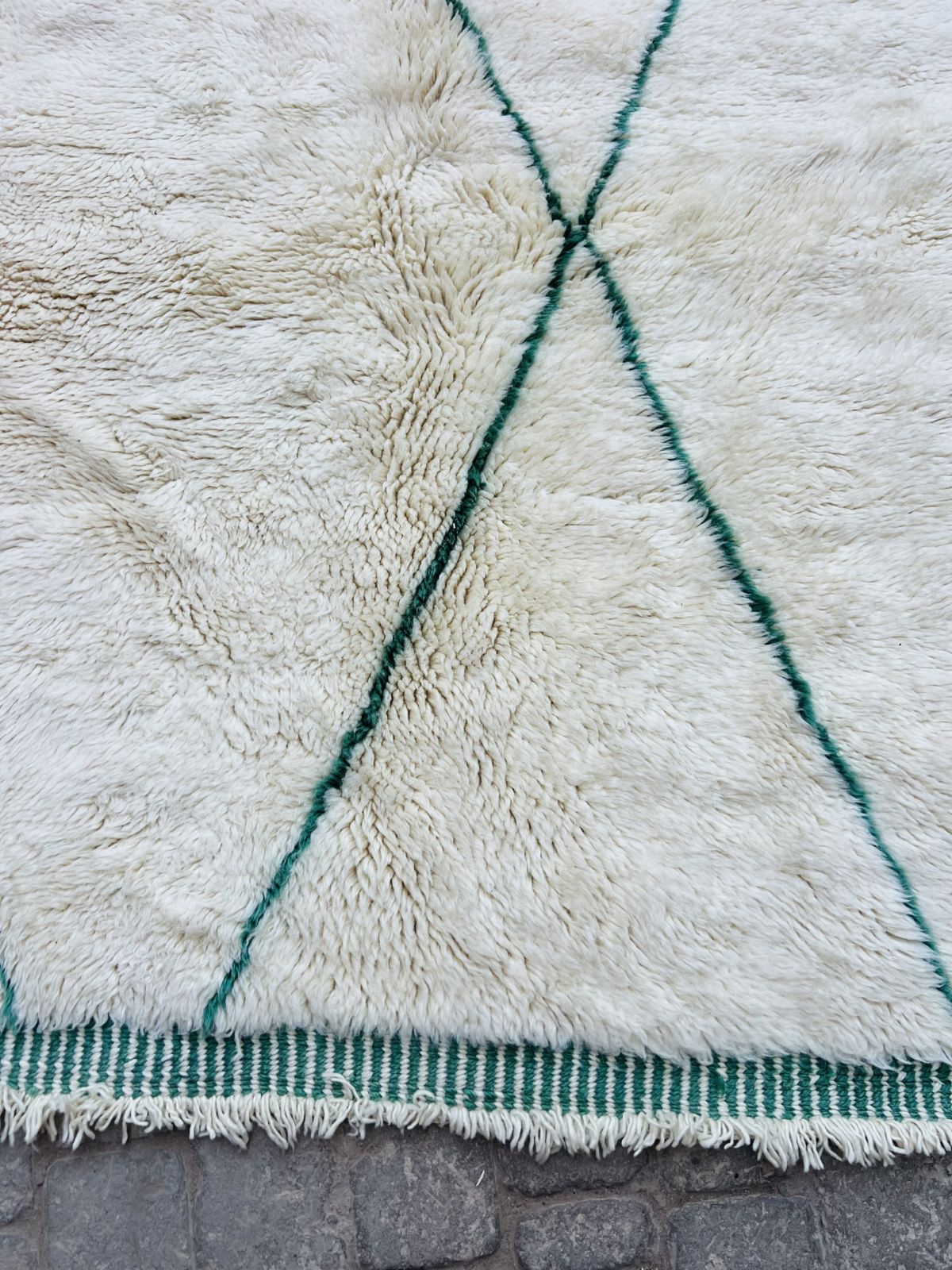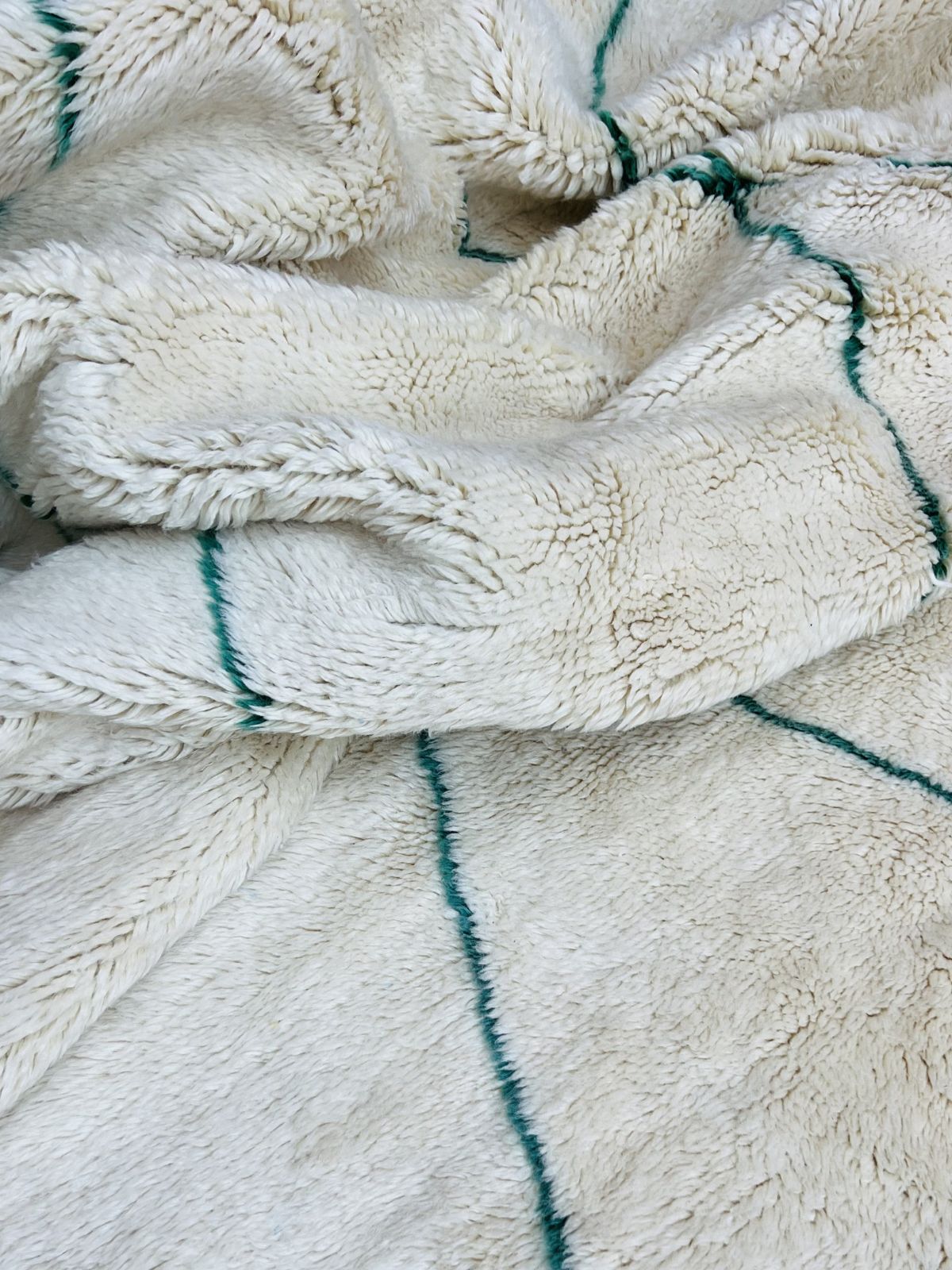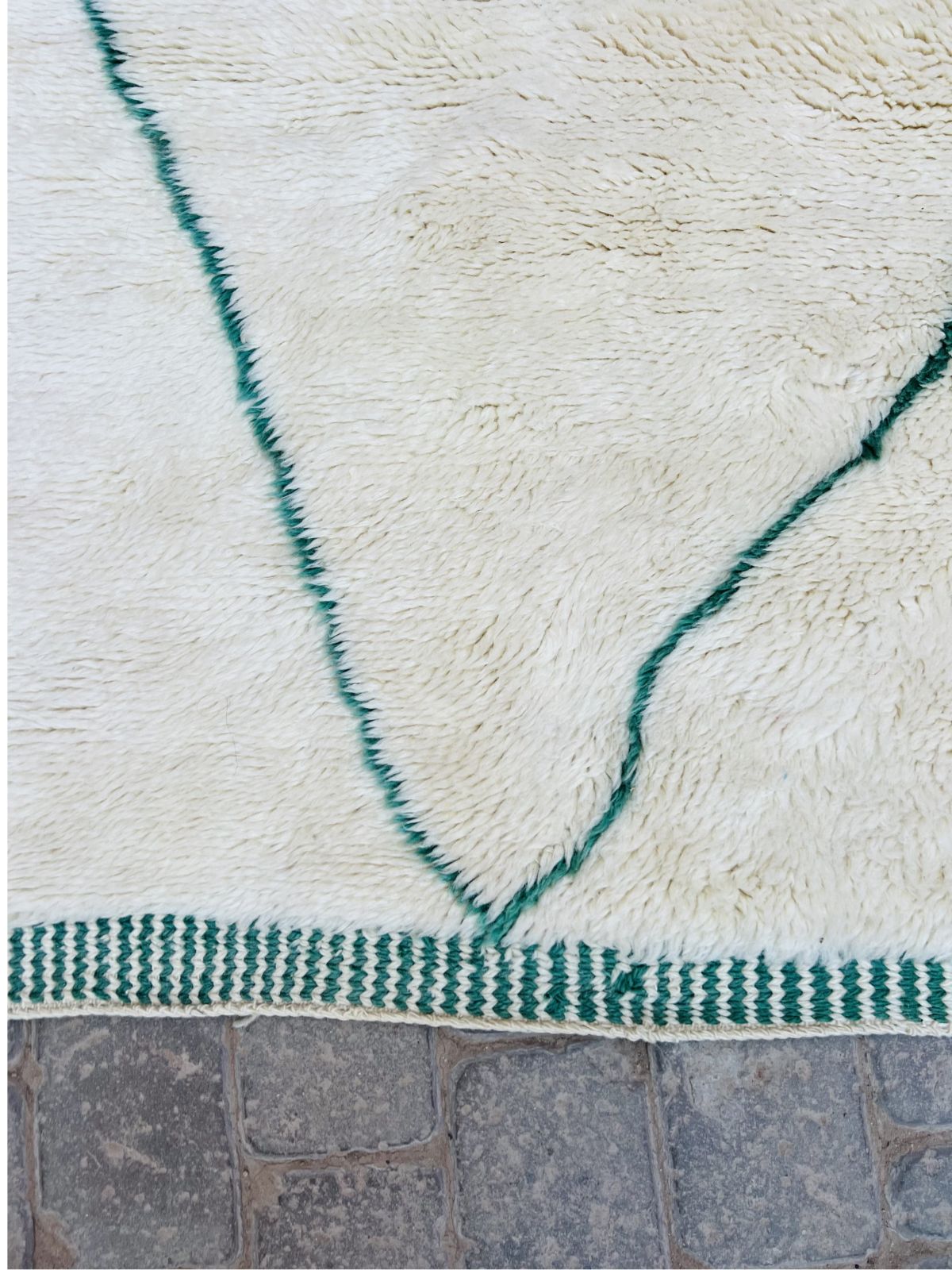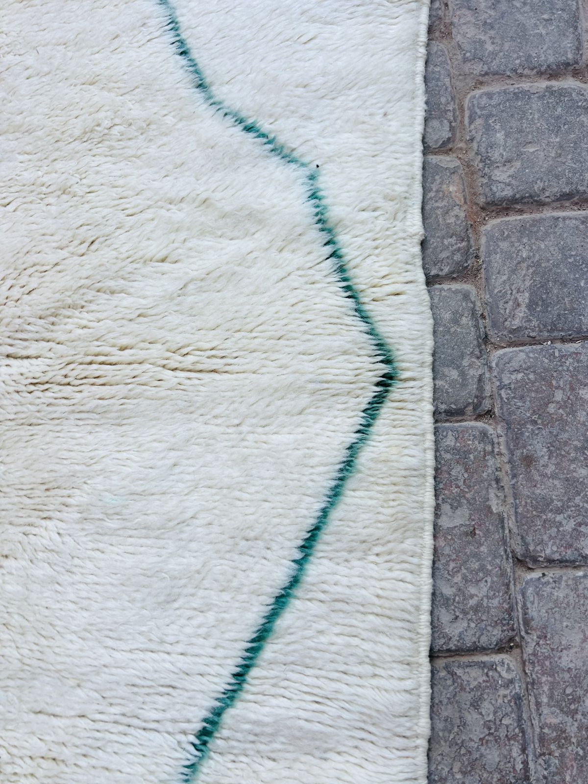 Contrairement aux tapis plus graphiques, le Beni Mrirt séduit par sa sobriété, ses nuances naturelles et ses motifs discrets, presque effacés, qui laissent place à la matière. Son toucher soyeux et son épaisseur généreuse offrent une sensation enveloppante, transformant chaque espace en un lieu de calme et de confort.
