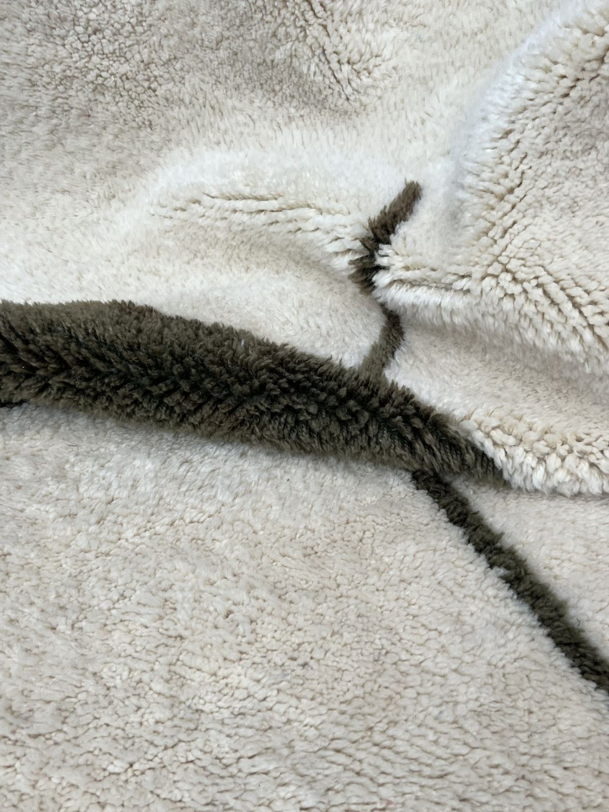 Contrairement aux tapis plus graphiques, le Beni Mrirt séduit par sa sobriété, ses nuances naturelles et ses motifs discrets, presque effacés, qui laissent place à la matière. Son toucher soyeux et son épaisseur généreuse offrent une sensation enveloppante, transformant chaque espace en un lieu de calme et de confort.